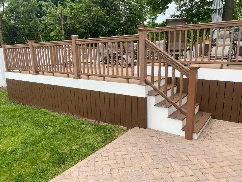 Significant yard slope required the upper deck to be elevated with proper structural support and the lower deck to be built at grade