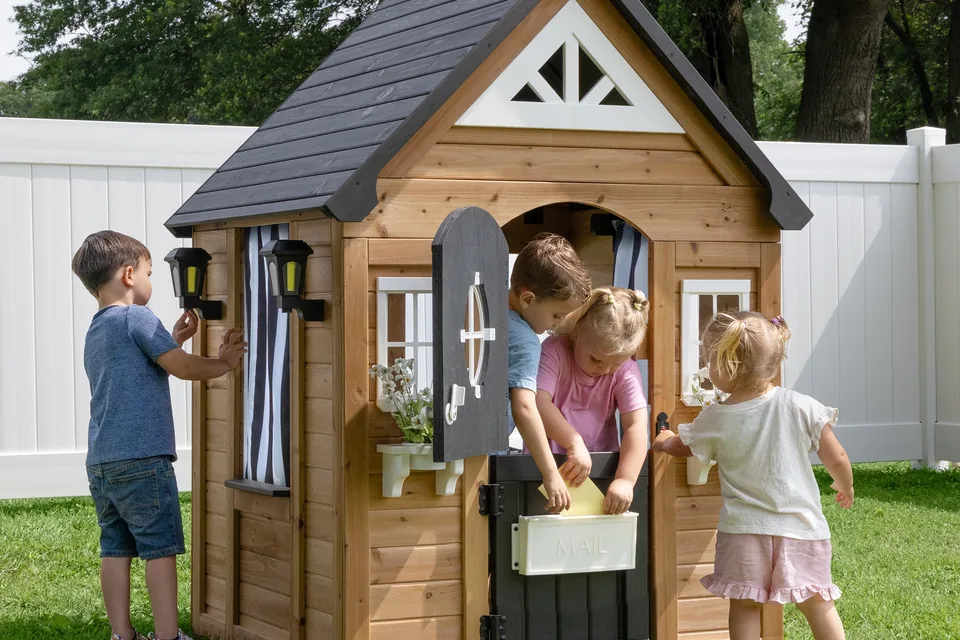Backyard Discovery swing sets, wooden playhouses, and play structures installed professionally. Leveled site, concrete anchoring, hardware checks, and optional rubber or mulch safety surfacing.